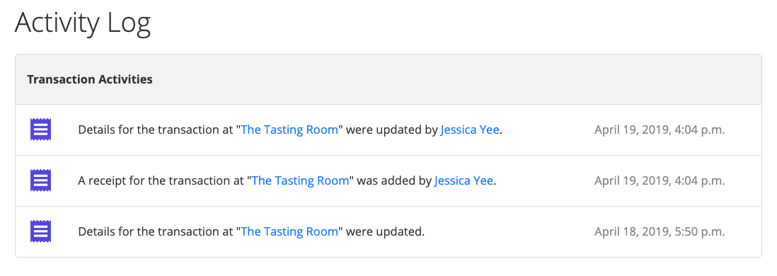 Transaction Activity Log